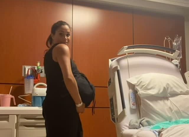 - osztotta meg az emléket Markle, aki a felvételen a kislánya születését várta.