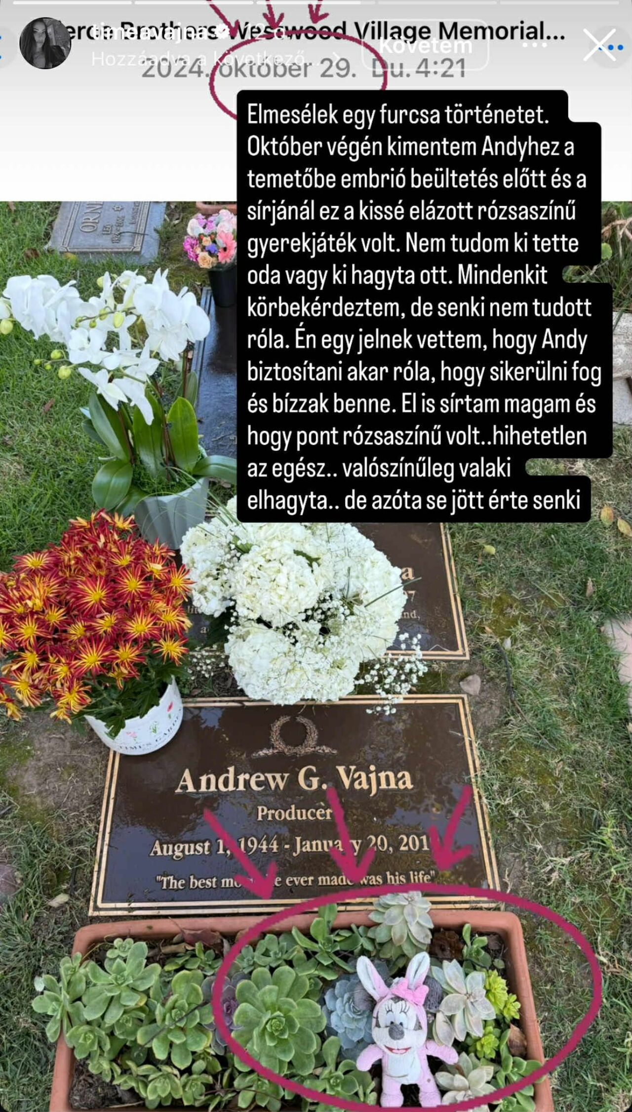 hirdetésPalácsik-Ráthonyi Tímea nem felejtette el volt férjét, Andy Vajnát – a mai napig ápolja a férfi emlékét. Nemrég egy különös történetet osztott meg a mindössze 24 órán át elérhető Instagram-történetében, ahol arról számolt be, hogy úgy érzi, a producer a síron túlról üzent neki.