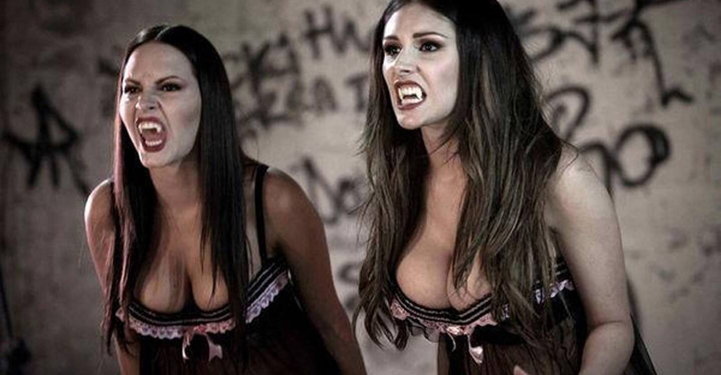 Sabine és Lucy a filmben mint Regine és Carmilla. A két profi glamour modell ugye már szerepelt együtt a Nutsban, de vámpírlányoknak se voltak utolsók.